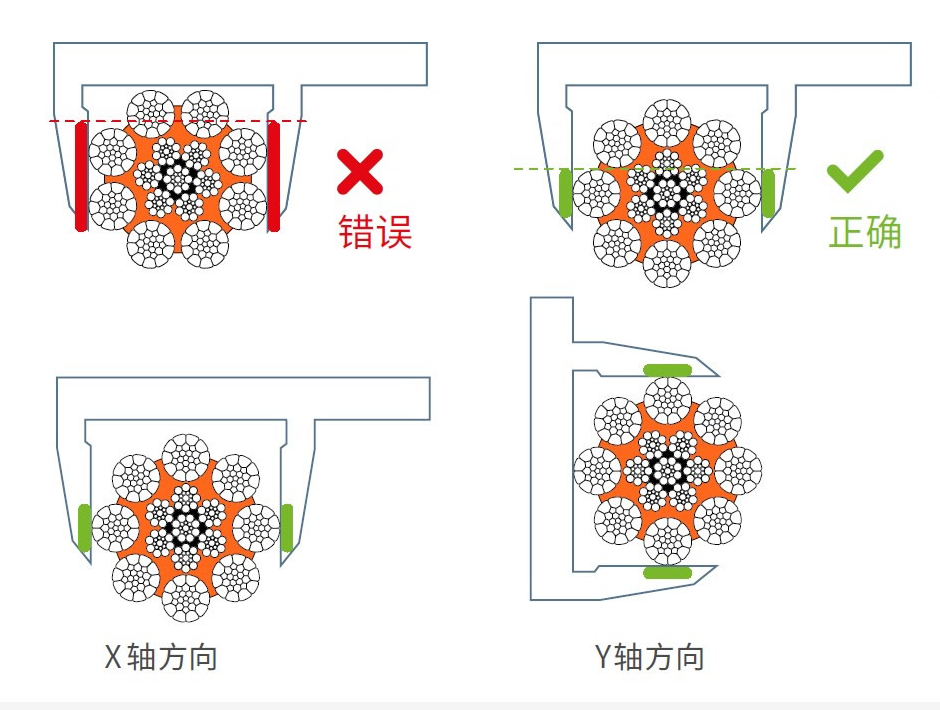 为确保钢丝绳直径测量结果的准确性,测量操作须在钢丝绳最宽截面处进行,具体测量基准为从一根钢股的股峰至相对侧另一根钢股的股峰。一次规范完整的测量过程,应包含 x 轴方向的两个测量数据与对应垂直方向的两个测量数据,且两组测量数据的间距需控制在约 1 米。将所有测量数据进行算术平均,所得结果即为该钢丝绳的实际测量直径。